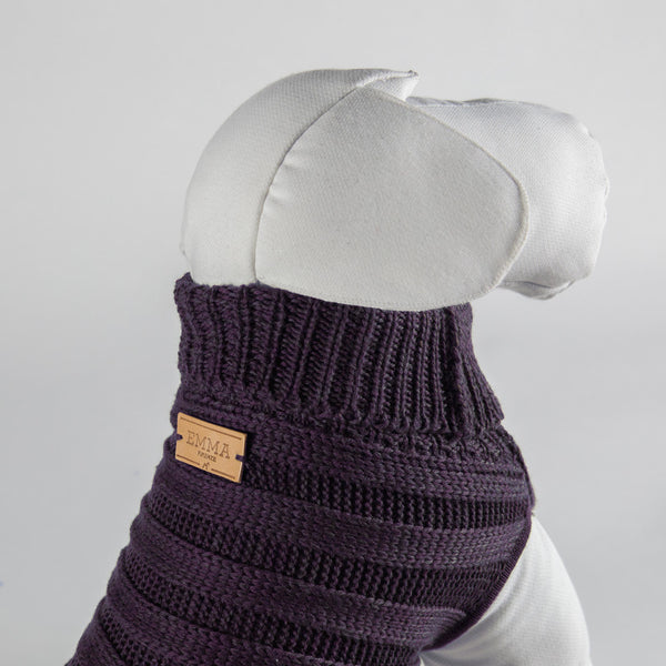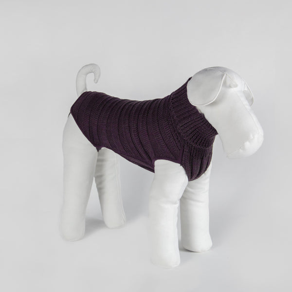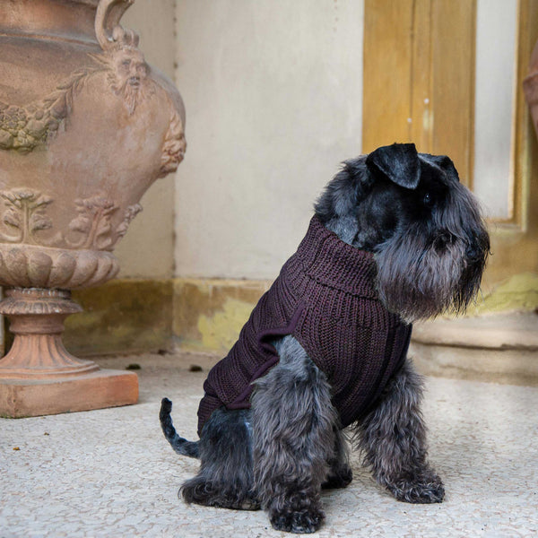 MADE-TO-MEASURE SWEATER FOR DOGS IN BLACK CHERRY WOOL BLACK CHERRY-UP&DOWN, the warm knitted dog coat with the perfect fit Black cherry color plain and purl stitch pure virgin Merino Superwash wool knitted dog coat. A warm and light garment to...