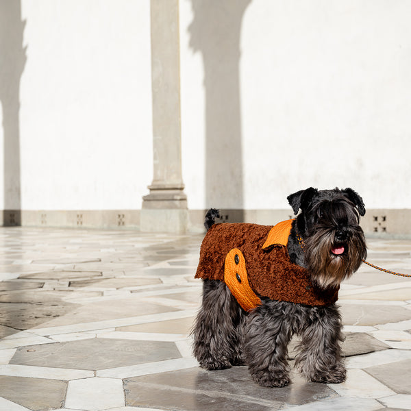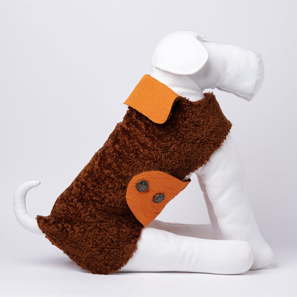 TAILORED COAT FOR DOGS WITH A WATERPROOF SIDE ORANGE ARMY, the coat/raincoat for dogs in ecological fur Orange Army is the fashion dog cloth with a waterproof side that refers to the traditional fur-lined jackets of the American and British...