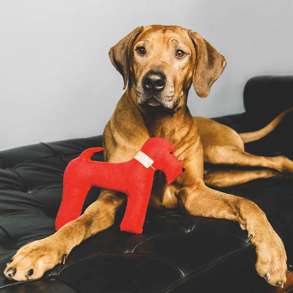GIFT TOY IN RED MOLESKIN FABRIC RED&FAUSTINA, designer dog toy in resistant fabric Fausta-Simplified… toys are important too! Hand made in sporty moleskin. Moleskin fabric production dates back to the Middle Ages. This fabric is appreciated both for its strength...